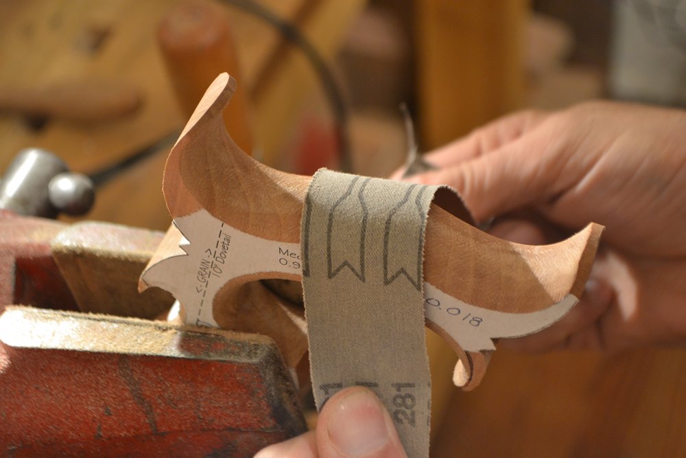 Sanding the lamb’s tongue transition.