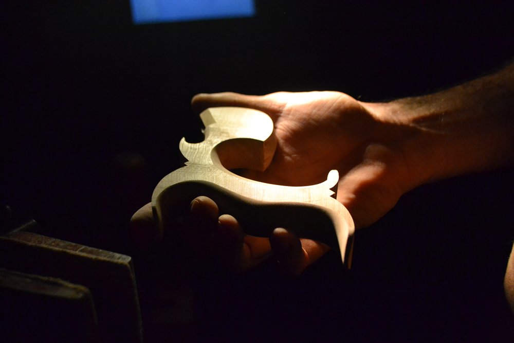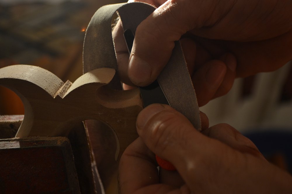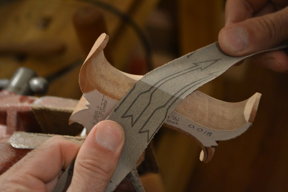 Sanding the edge of the horn.